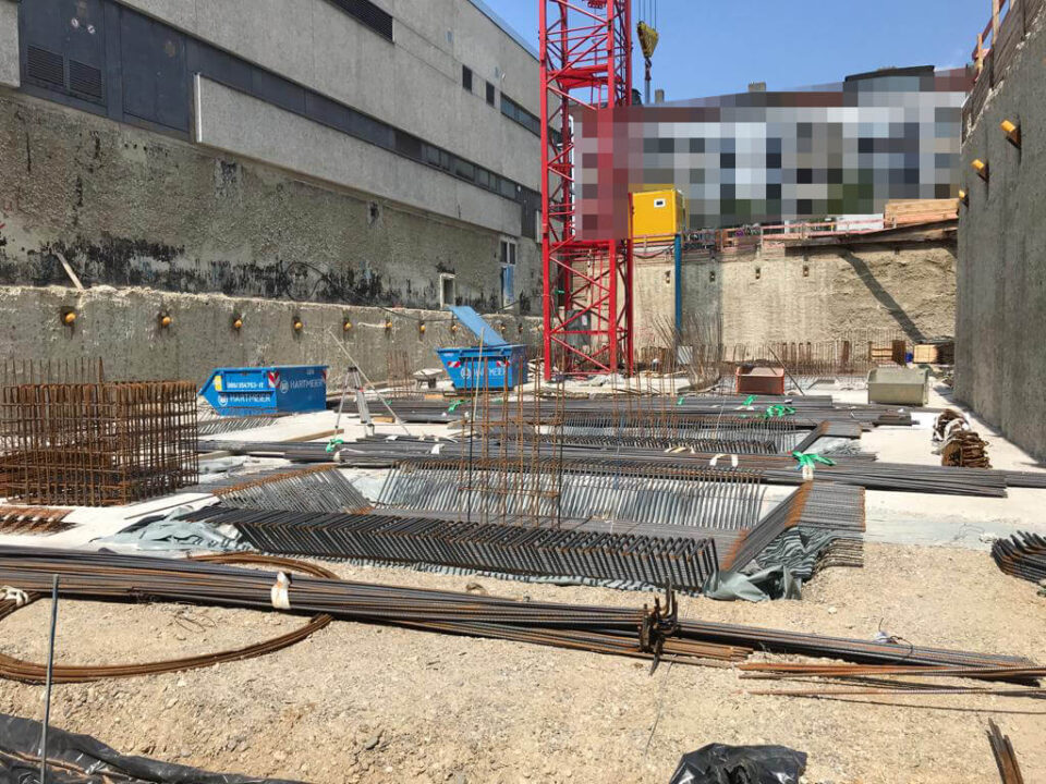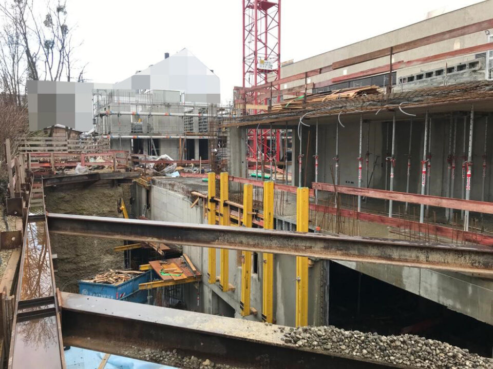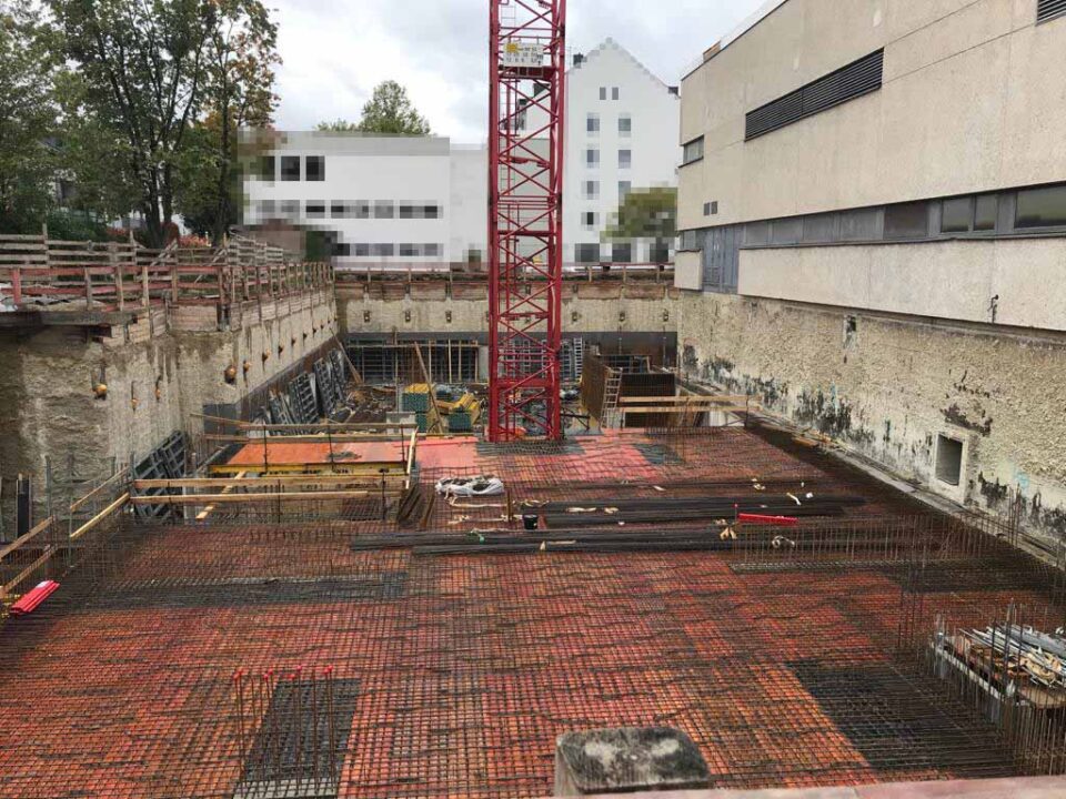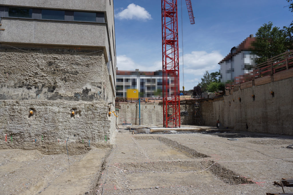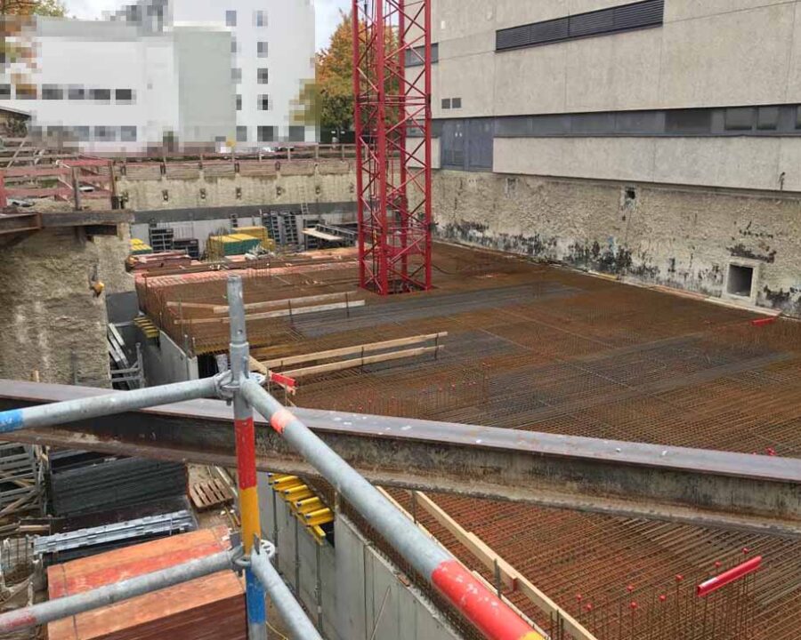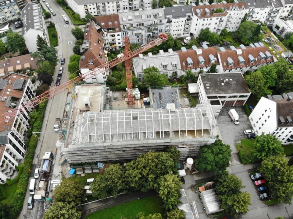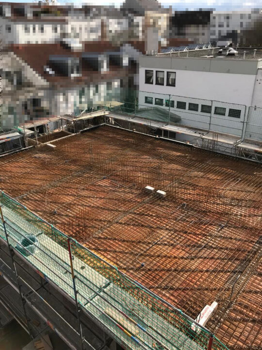 Die Herausforderung bei diesem Projekt ist ein bestehendes Gebäude während der Vermietung zu erhalten und in den Neubau zu integrieren. Hierbei kommt als Aufstockung des Bestandsgebäudes ein Stahlbau zum Einsatz, genauso wie eine technisch sehr anspruchsvolle Aquapaneel-Fassade.