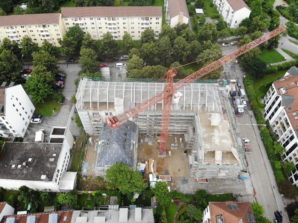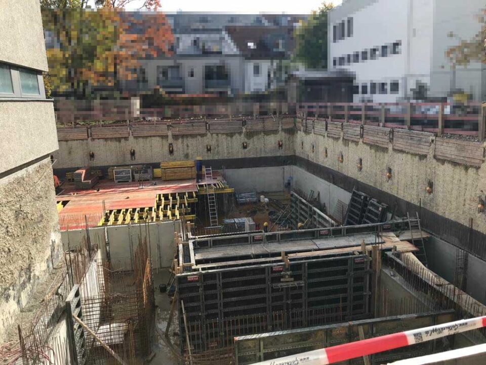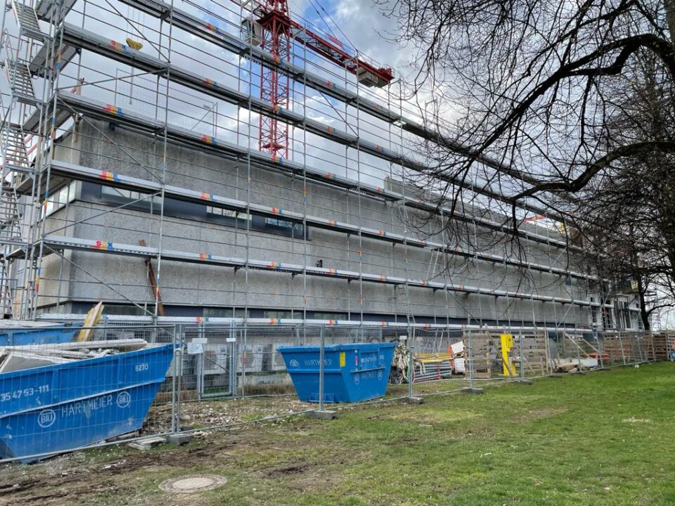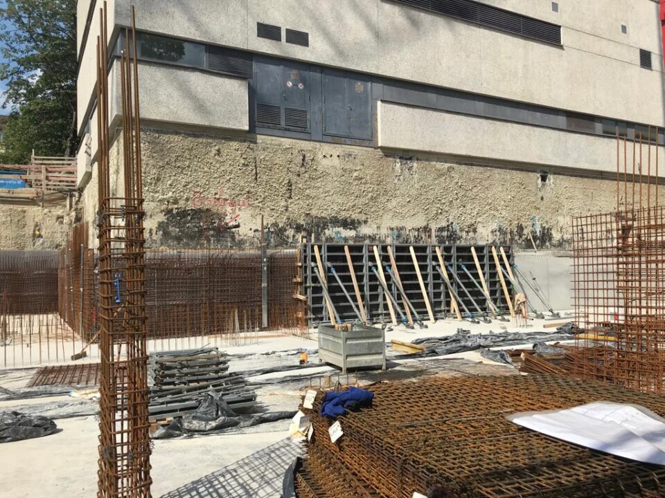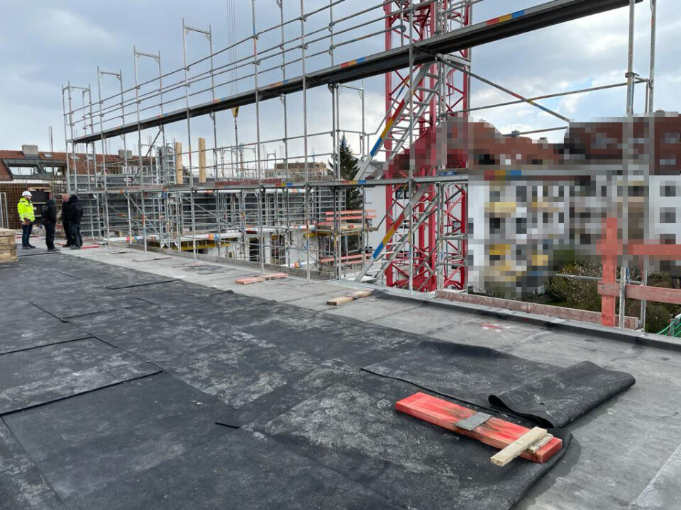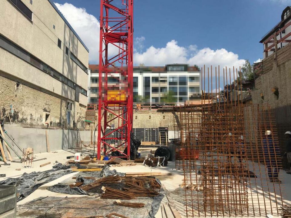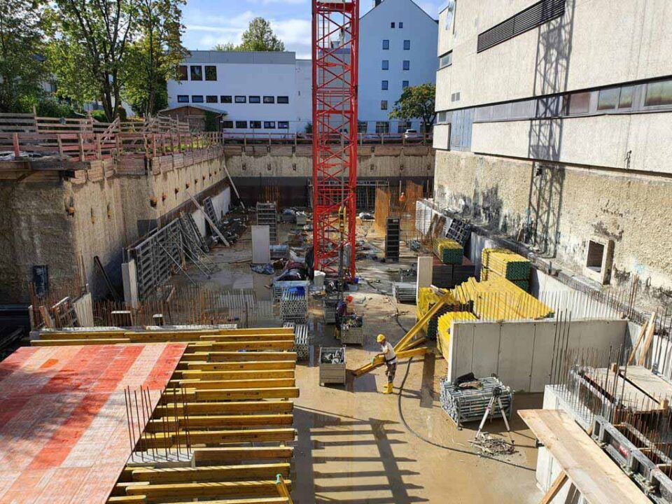 Die Herausforderung bei diesem Projekt ist ein bestehendes Gebäude während der Vermietung zu erhalten und in den Neubau zu integrieren. Hierbei kommt als Aufstockung des Bestandsgebäudes ein Stahlbau zum Einsatz, genauso wie eine technisch sehr anspruchsvolle Aquapaneel-Fassade.