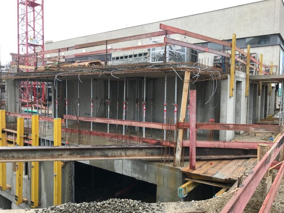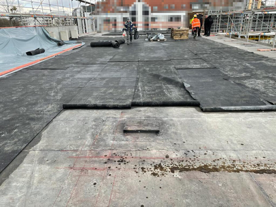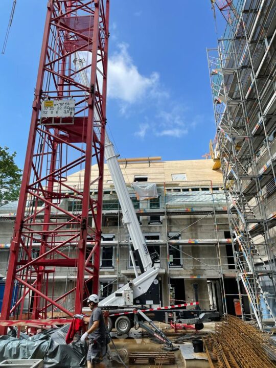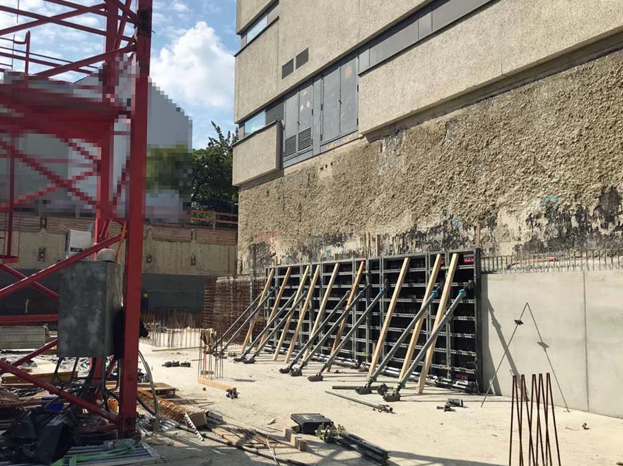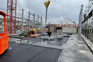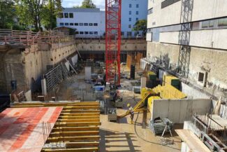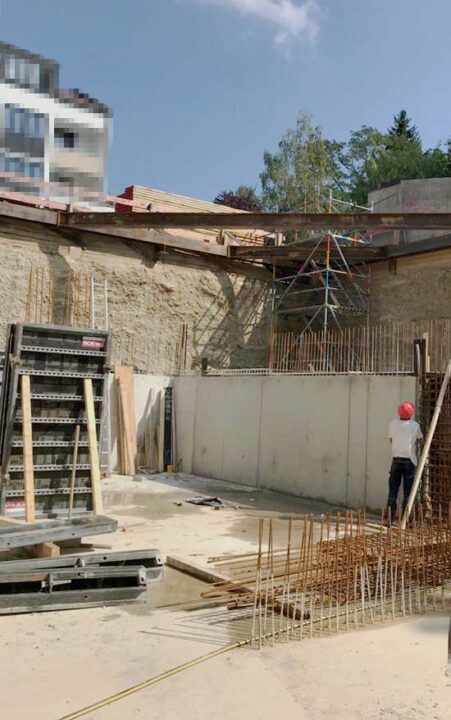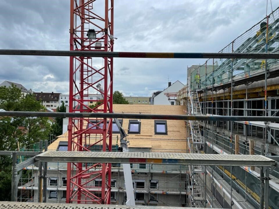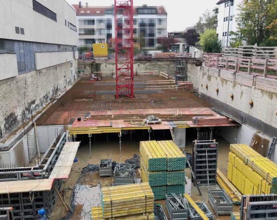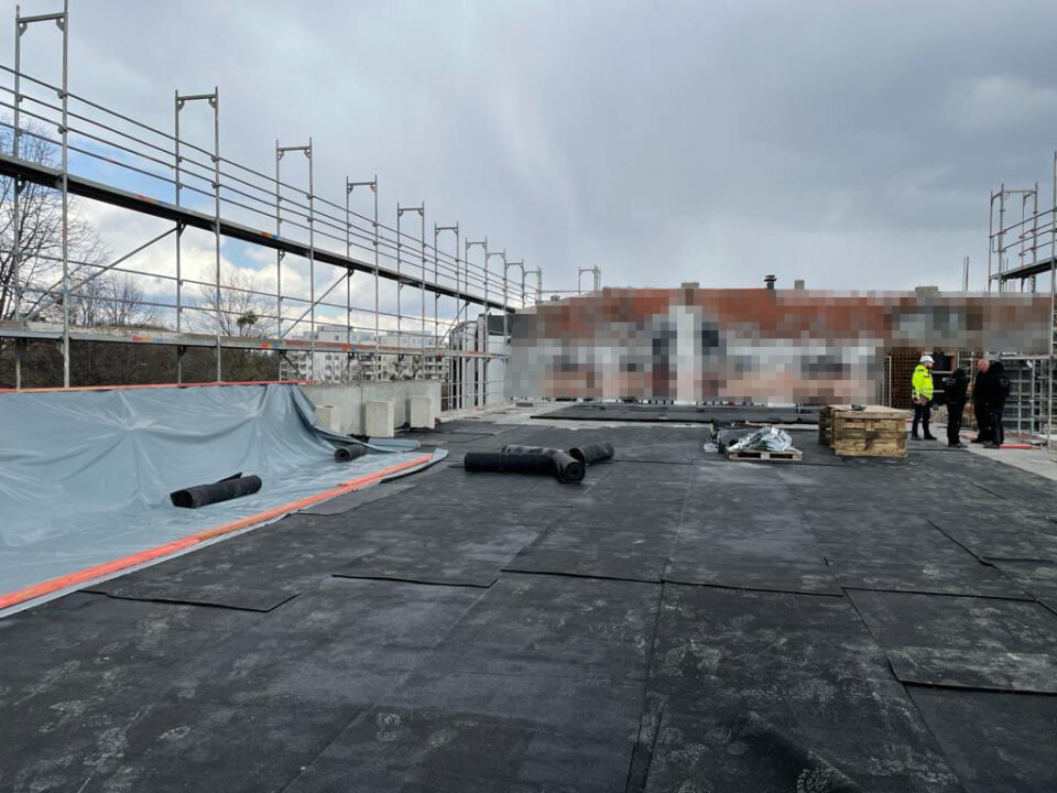 Die Herausforderung bei diesem Projekt ist ein bestehendes Gebäude während der Vermietung zu erhalten und in den Neubau zu integrieren. Hierbei kommt als Aufstockung des Bestandsgebäudes ein Stahlbau zum Einsatz, genauso wie eine technisch sehr anspruchsvolle Aquapaneel-Fassade.