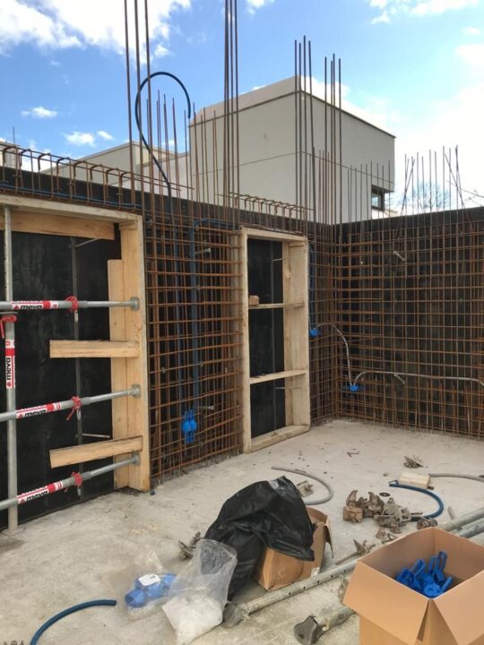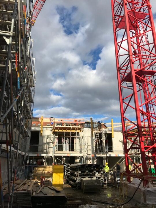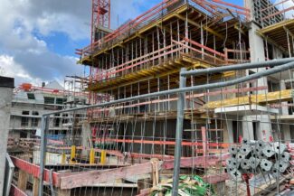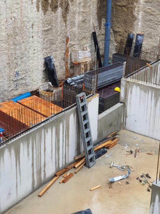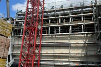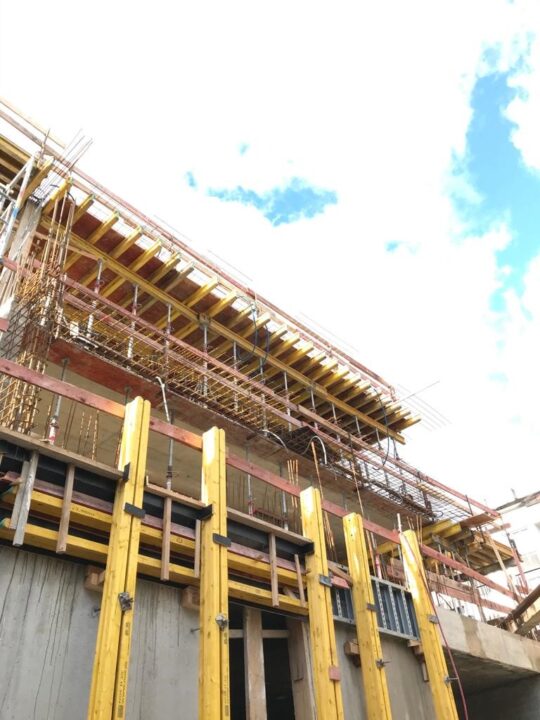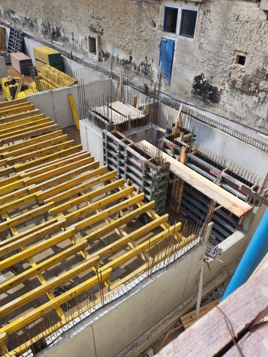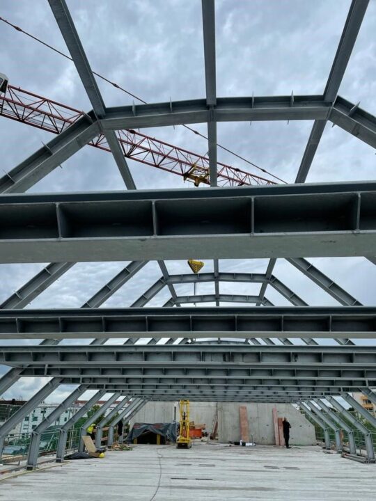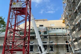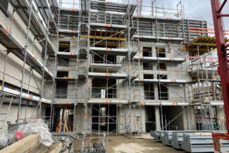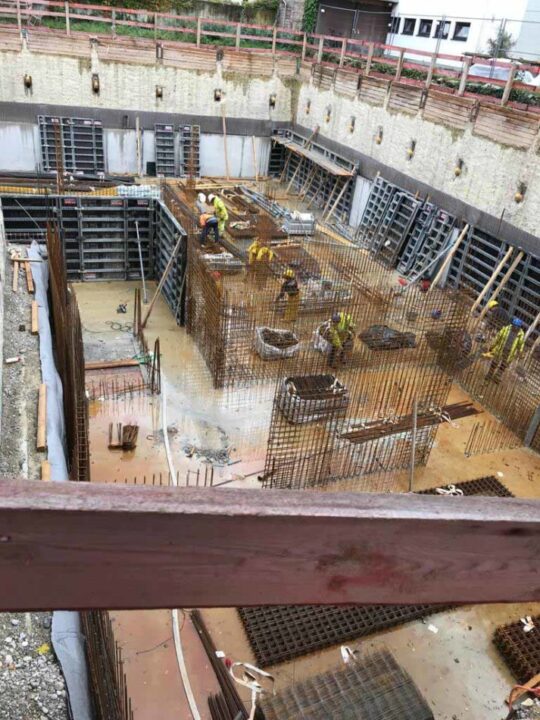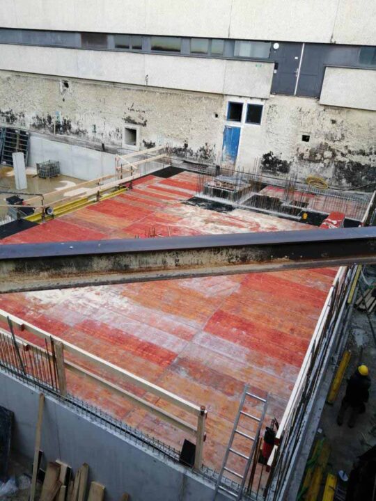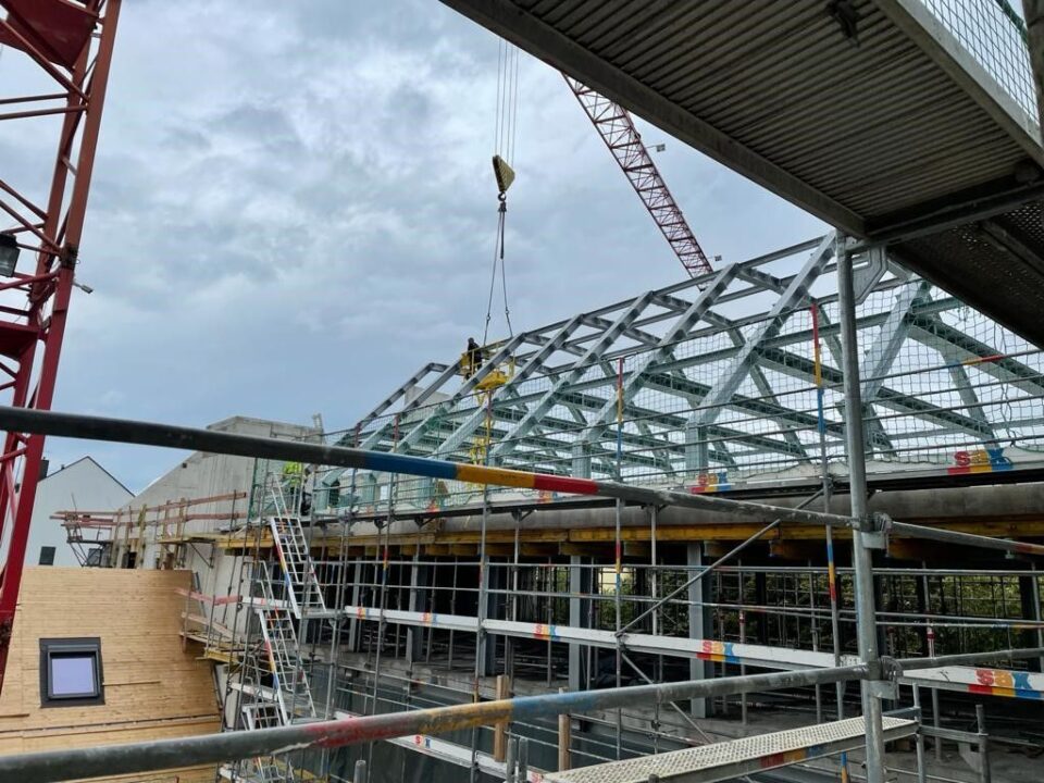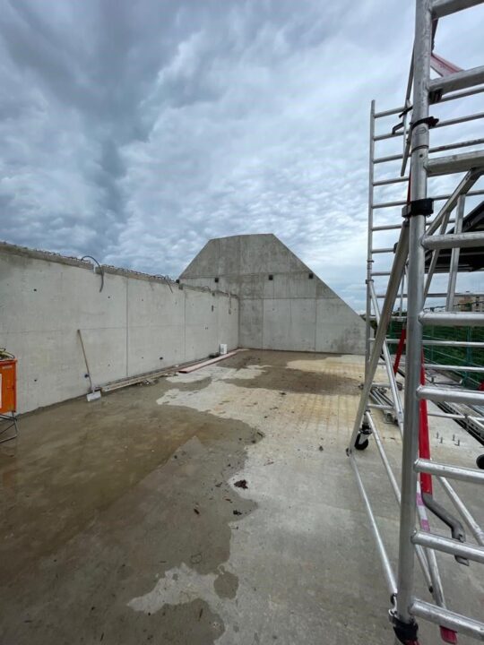 Die Herausforderung bei diesem Projekt ist ein bestehendes Gebäude während der Vermietung zu erhalten und in den Neubau zu integrieren. Hierbei kommt als Aufstockung des Bestandsgebäudes ein Stahlbau zum Einsatz, genauso wie eine technisch sehr anspruchsvolle Aquapaneel-Fassade.