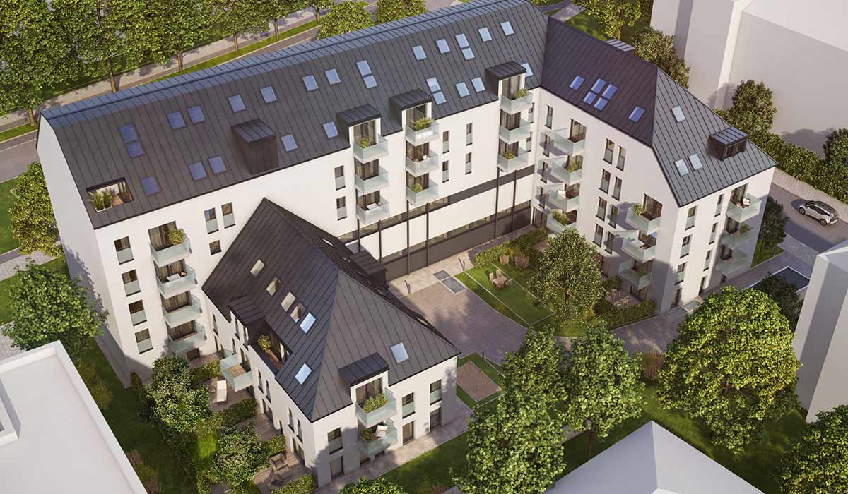 Schon von außen betrachtet sticht die bemerkenswerte Fassade des WestparkQuartiers ins Auge. Durch einen Neubau und eine Überbauung des Bestandsgebäudes entsteht in Sendling-Westpark attraktiver Wohnraum in Form von 42 Eigentumswohnungen, mit Balkonen, Loggien und Privatgärten. Über Aufzüge von der Tiefgarage, z.T. mit Ladestationen für E-Fahrzeuge, sind die Wohnungen bis ins Dachgeschoss bequem zu erreichen. Einige der Wohnungen werden als Haus im Haus ausgeführt, was besonders für junge Familien eine bevorzugte Wohnform darstellt. Und dies mitten in München.