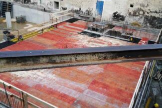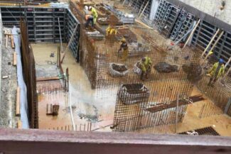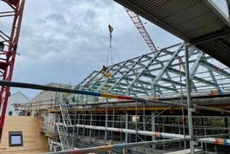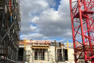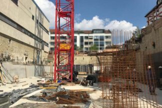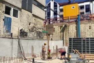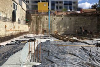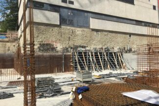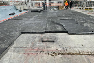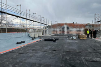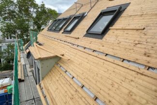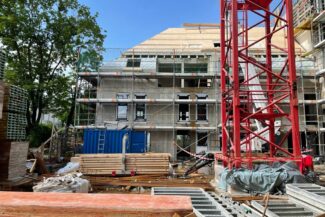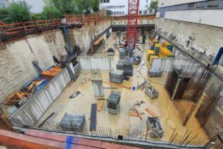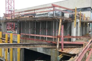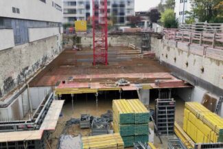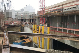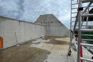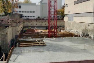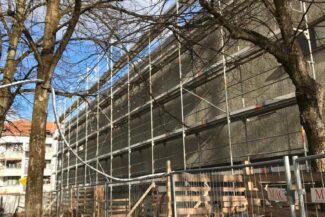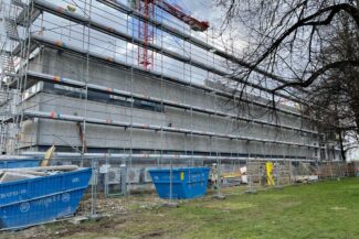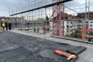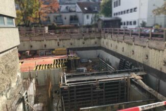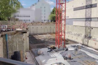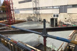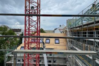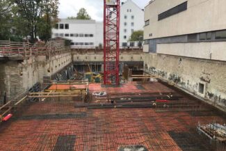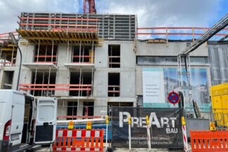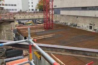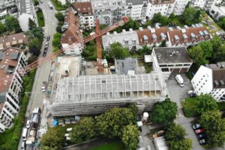 Die Herausforderung bei diesem Projekt ist ein bestehendes Gebäude während der Vermietung zu erhalten und in den Neubau zu integrieren. Hierbei kommt als Aufstockung des Bestandsgebäudes ein Stahlbau zum Einsatz, genauso wie eine technisch sehr anspruchsvolle Aquapaneel-Fassade.