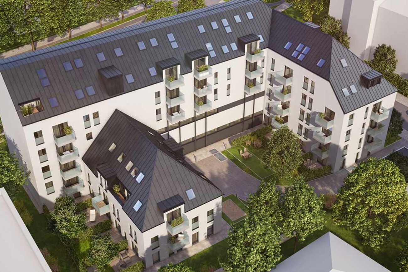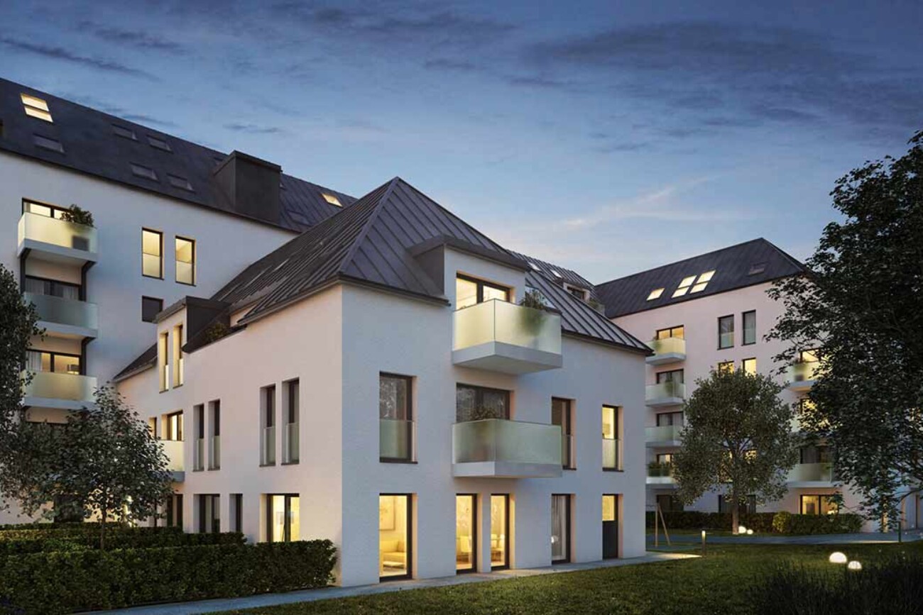 Schon von außen betrachtet sticht die bemerkenswerte Fassade des WestparkQuartiers ins Auge. Durch einen Neubau und eine Überbauung des Bestandsgebäudes entsteht in Sendling-Westpark attraktiver Wohnraum in Form von 42 Eigentumswohnungen, mit Balkonen, Loggien und Privatgärten. Über Aufzüge von der Tiefgarage, z.T. mit Ladestationen für E-Fahrzeuge, sind die Wohnungen bis ins Dachgeschoss bequem zu erreichen. Einige der Wohnungen werden als Haus im Haus ausgeführt, was besonders für junge Familien eine bevorzugte Wohnform darstellt. Und dies mitten in München.